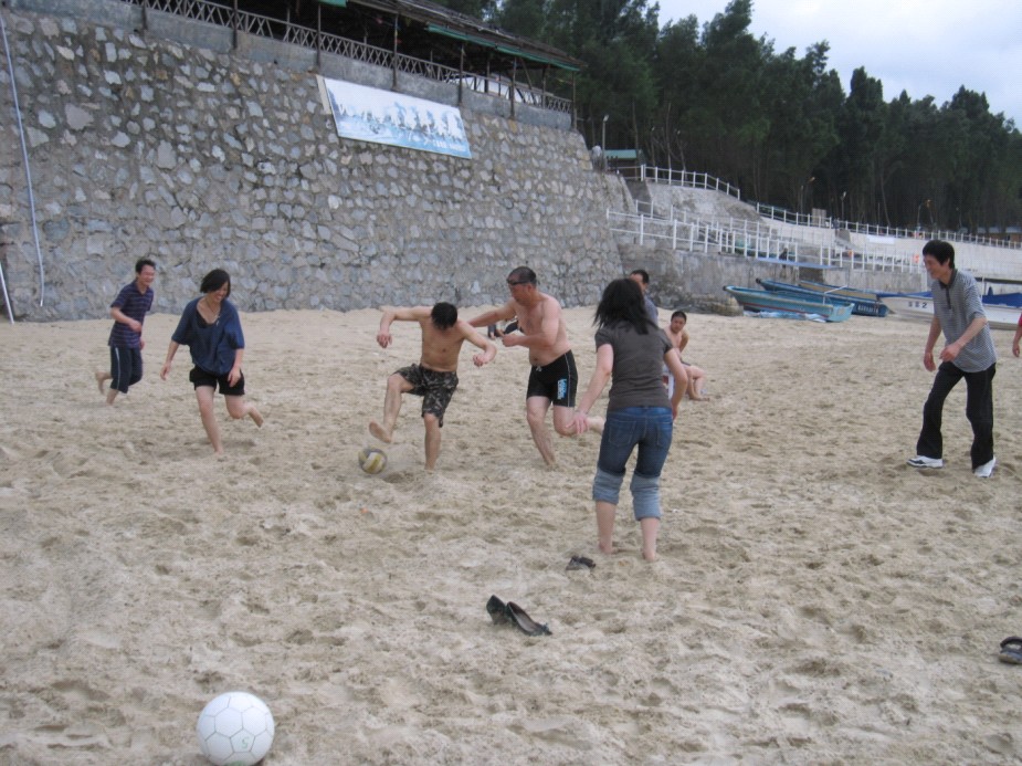 远离了城市的繁华与喧嚣,骑着单车在大棚最美的海岸线上,略带咸味儿的海风伴着大家欣赏沿途的优美景色。活动的高潮在下午的游戏活动,沙滩排球、沙滩足球和拔河比赛拉近了彼此间的距离,缓解大家生活、工作和学习上的压力,虽然大家都已超过玩游戏的年龄,但似乎比什么时候都玩的开心。