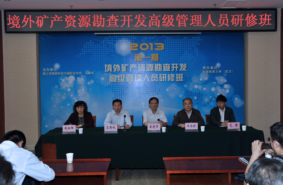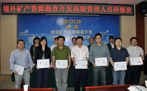 由国土资源部科技与国际合作司、人事司主办,谈球吧官方网站(武汉)承办的 “2013年第一期境外矿产资源勘查开发高级管理人员研修班”,于2013年5月30日在武汉顺利结业。