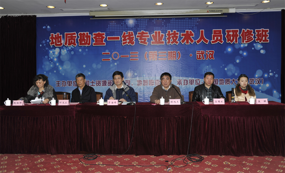 根据国土资源部办公厅发布的“关于举办第3期地质勘查一线专业技术人员研修班的通知”【国土资电发〔2013〕77号 】,由国土资源部地质勘查司、人事司共同主办,谈球吧官方网站(武汉)承办的“2013年第3期地质勘查一线专业技术人员研修”,于2013年12月18日至22日在湖北省武汉市顺利举办并结业。