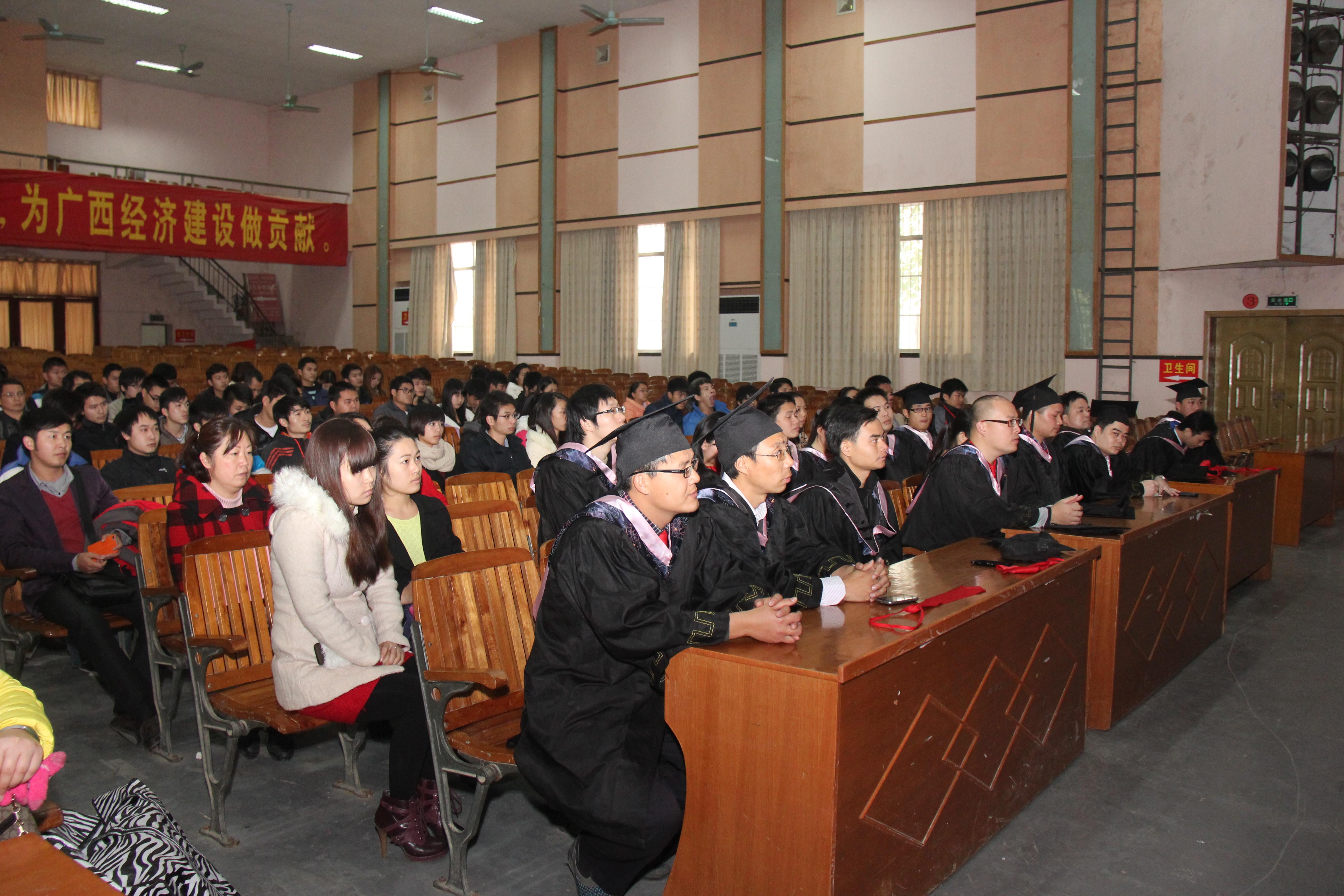 2014年1月12日,广西函授站召开了2014年新生开学典礼暨2013届秋季毕业典礼。函授站400多名师生出席典礼,教师代表、毕业生代表、新生代表相继发言。函授站站长、广西机电工业公司董事长、书记冯戈,副书记黄国良等几位领导与新生、毕业生们共同见证这神圣的一刻。冯董事长代表地大谈球吧官方网站向在座的新生表示热烈的欢迎,向毕业生表示了衷心的祝贺。