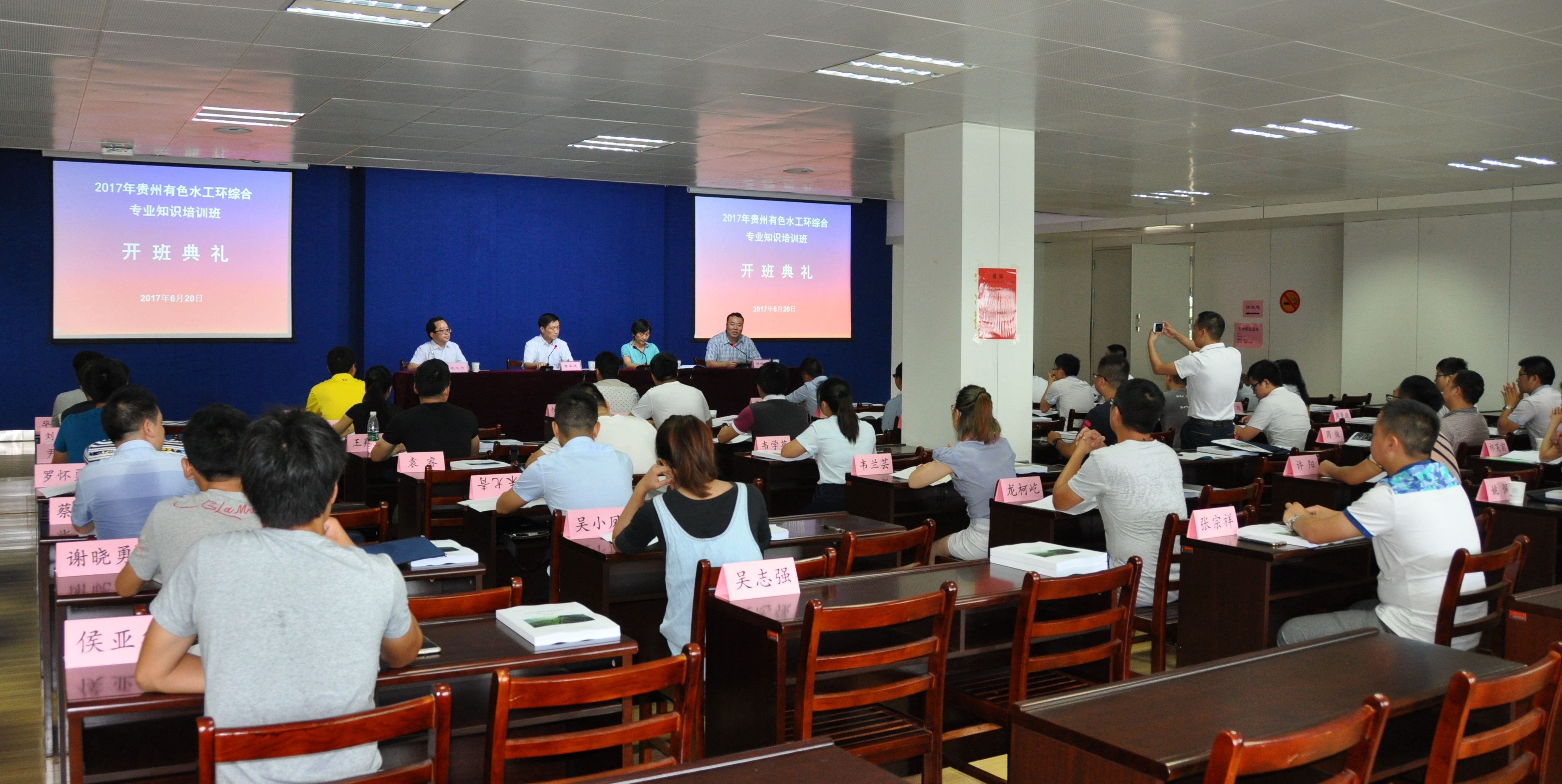 自6月20日至7月12日,在为期23天的培训中,来自贵州有色局的44名专业技术人员,将系统学习水文、环境、工程地质、地灾防治等四大类型的专业基础知识。以期通过本次水工环地质专业相关的基础理论知识的培训,指导专业技术人员将来更好地开展水工环地质工作。