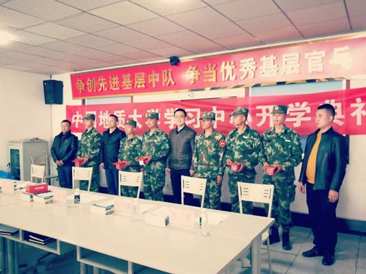 下午3点,在部队营区的大会议室,举行了隆重的开学典礼。学习中心老师宣读了员工会成员名单,主席台领导和老师为员工干部颁发了聘书,并为他们佩戴了谈球吧官方网站校徽。2018春员工会主席,武警战士张某发言,他表示作为员工干部会认真学习,不断提高军事能力和文化知识,使自己在部队不断进步、提高,并会尽其所能服务好每一位战友和同学。贺亚锋、余必胜老师一行为同学代表发放了教材,希望同学们在站岗放哨之余好好读书,成为不仅军事强,而且知识广,能力高的有志青年,用学到的知识好好报效祖国。班主任孙川老师就两年半的学习安排,以及考试作业情况进行了详细说明,要求各位同学严格遵照公司的要求,认真学习,认真考试。