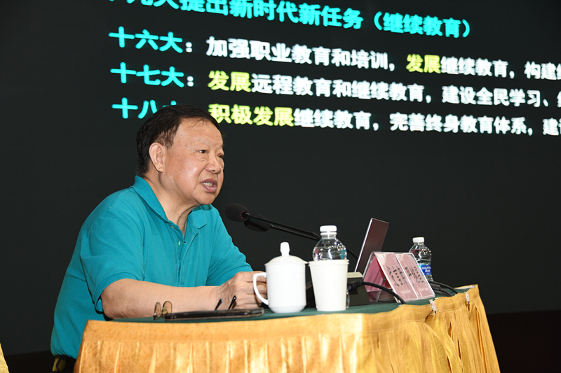 严继昌教授作《校外学习中心建设与改造提升远程教育的关系》的专题报告。他从教育部发展继续教育的总思路、继续教育的四大融合发展趋势、教学质量与校外学习中心建设等三方面做了详细阐述,与会代表纷纷表示受益良多。