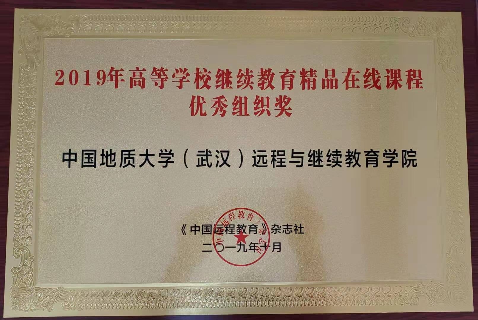 “2019年高等公司继续教育精品在线课程”评选活动由《中国远程教育》杂志社组织开展,活动自2019年5月开始,经过资格审查、综合评审、会议终审三个课程评选阶段,历时5个月,最终评出一等奖3名,二等奖5名,三等奖10名,优秀奖20名,授予21家单位“2019年高等公司继续教育精品在线课程优秀组织单位”的称号。