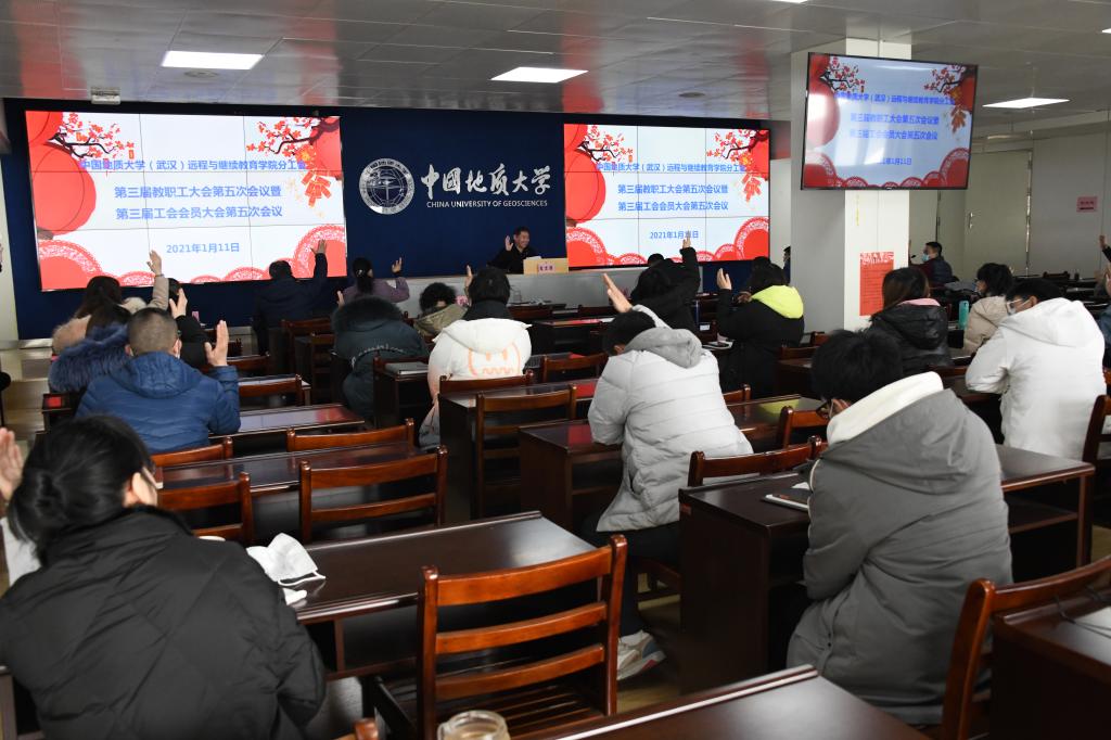 2021年1月11日上午,谈球吧官方网站分工会在公司三楼教室召开了第三届教职工大会第五次会议暨第三届工会会员大会第五次会议。会议由继续教育与网络信息党总支书记吕国斌同志主持。校工会杨世清副主席出席了会议并讲话。谈球吧官方网站、网络与信息中心全体教职工参加了会议。