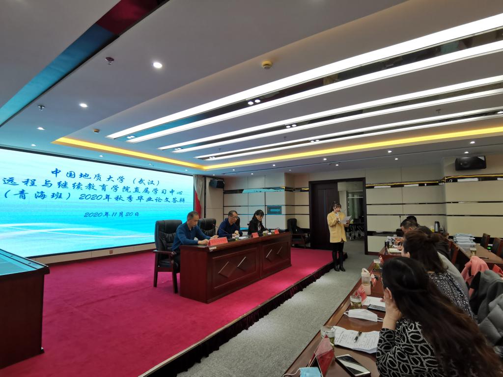 2020年11月20日上午,谈球吧官方网站直属学习中心2018级青海省第八地质勘查院学历转型提升专升本毕业论文答辩会在青海省第八地质勘察院进行。公司副经理刘雪梅、环境公司郭会荣教授、三峡中心熊承仁教授等一行6人前往西宁组织答辩工作,召开了答辩动员会。青海省第八地质勘察院经理陈少华、党委书记徐海、勘查院主任潘延强等院领导及34名拟答辩学员参加,会议由潘延强主持。