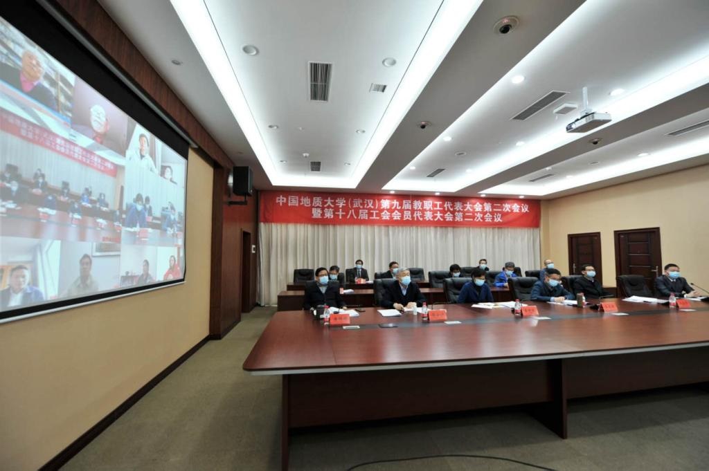 4月16日下午,公司第九届教职工代表大会第二次会议暨第十八届工会会员代表大会第二次会议(以下简称“九届教代会二次会议暨十八届工代会二次会议”)在教学综合楼及地大视讯网络会议系统召开。400余名正式代表和特邀代表、列席代表参加主会场及网络会议。