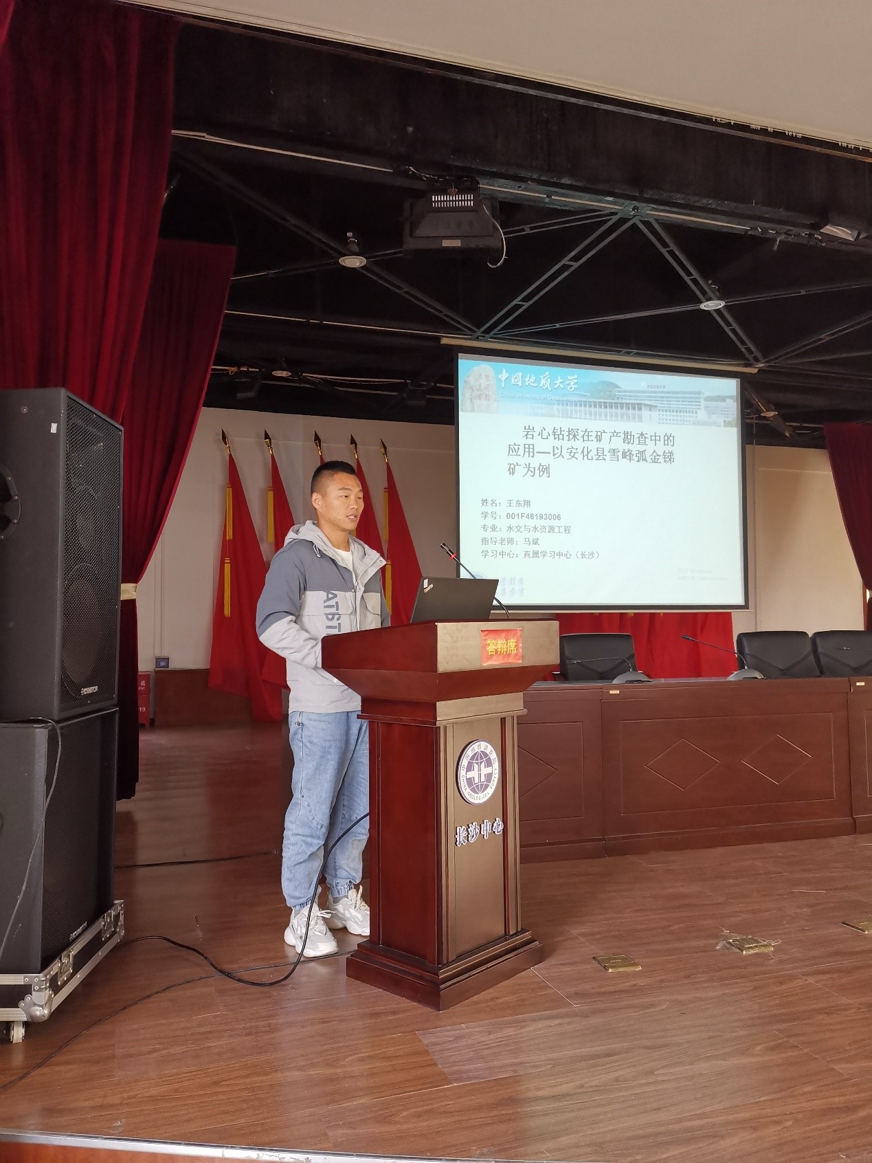 毕业生代表侯北平代表2019秋季宁乡班感谢地大的精心培养,感谢导师的传道授业解惑,感谢单位的支持和鼓励。他表示,站在新时代的浪潮上,我们必须“强心志、强担当、强本领”,不断学习新知识,掌握新技能,接受新事物,研究新问题,多方面提升综合本领,推动队伍向新时代地质工作的转型。