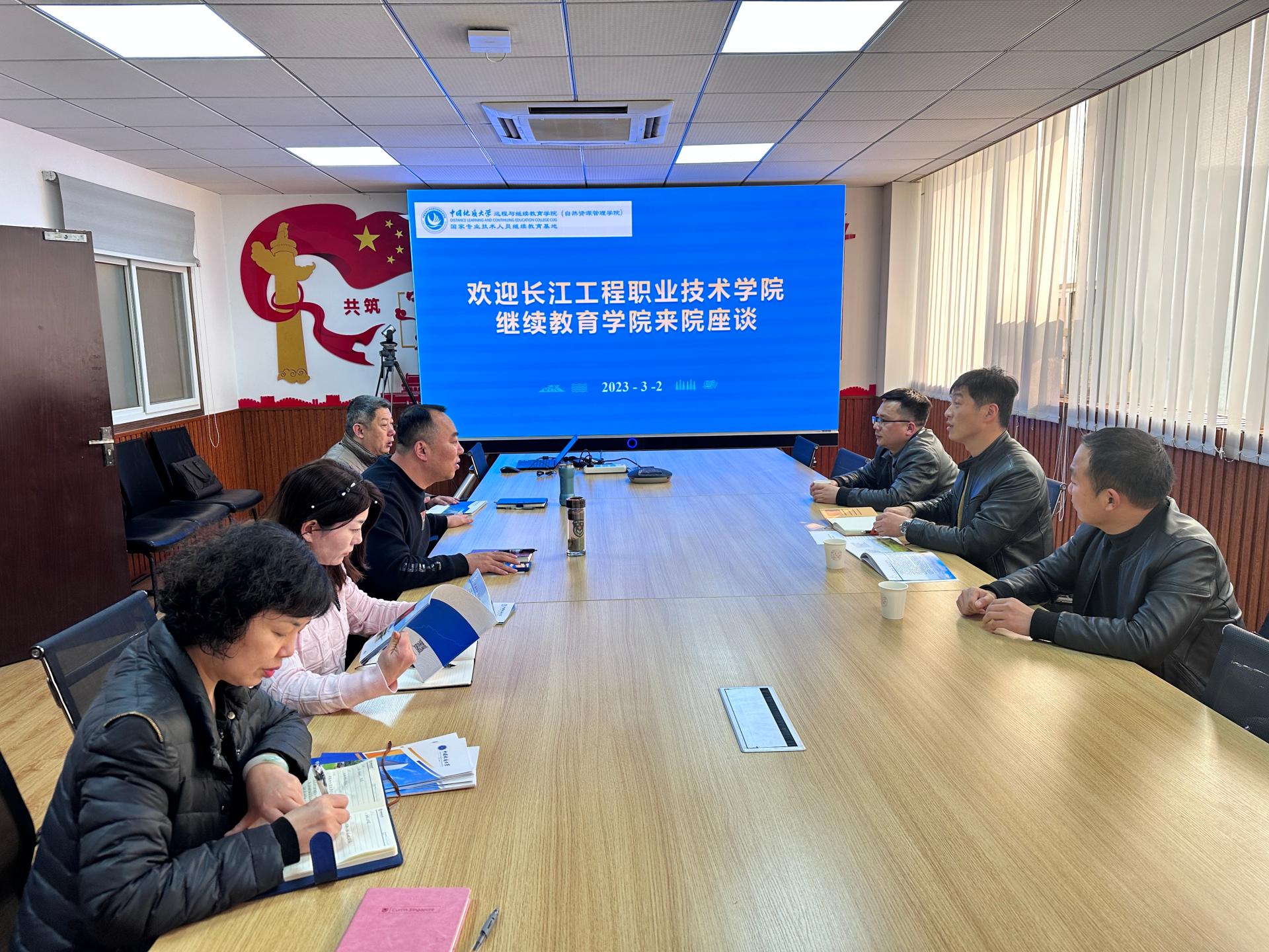 (通讯员 李绍)3月2日下午,公司与长江工程职业技术公司继续教育公司举行座谈会。会议就建立自学考试合作助学站点进行了深入具体的交流。经理隋明成、副经理刘东杰、长江工程职业技术公司继续教育公司经理门传开及随行工作人员、院办主任左杨、自考办主任陈莹、站点建设办负责人杨红参加了本次会议。