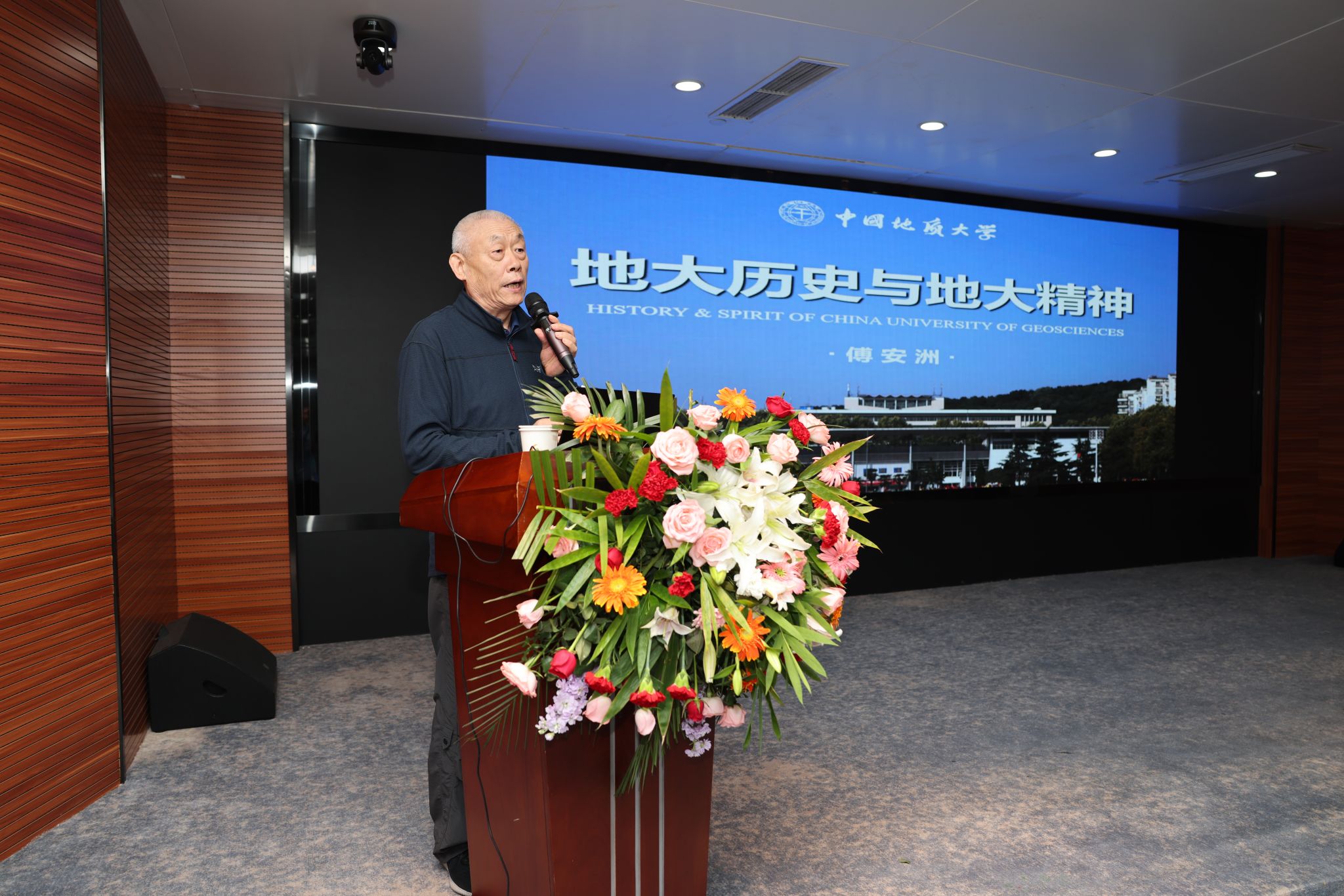 傅安洲教授作《地大历史与地大精神》的专家报告。他详细阐释了地大精神的丰富内涵,与会代表反响热烈。