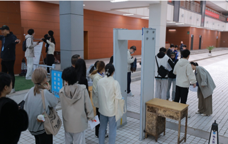 在考务组织与服务保障方面,公司多措并举:通过网站、公众号等多线上平台发布赴考须知、手机管理通告,并设置多处道路指引牌。依据东区教综楼、西区教一楼以及北区综合楼各考场楼栋及周边地理形势,科学规划安检及手机存取流程,确保各环节快速高效。