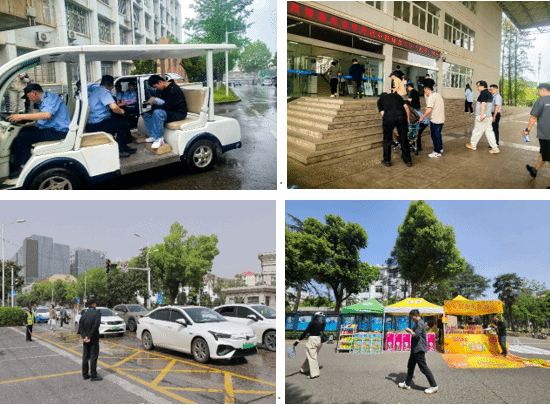 各考区积极为考生安排临时停车区域,并联合社区交警维持校外车辆停放秩序;后勤保障部设立暖心服务点,提供水、小吃、考试用品等;安全保卫部专门组建送考服务队,帮助走错区域、腿脚不便的考生准时赴考,以贴心服务为考生保驾护航。考试期间,武汉遭遇了极端大风暴雨天气,公司迅速启动应急预案,各部门通力合作应对突发状况,全力保障考试正常进行,得到了考生的广泛赞誉。