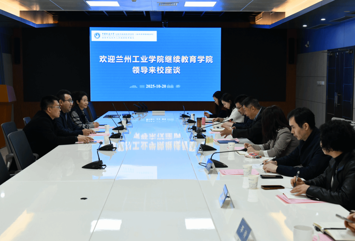 会议伊始,刘东杰回顾了两校的合作历程,自 2003 年携手开展网络教育以来,双方合作已持续 22 年,累计培养 8000 余名网络教育毕业生,办学成果显著。随后,牛永红介绍了兰州工业公司继续教育公司的发展现状,并对公司长期以来在继续教育工作中给予的支持表示衷心感谢。他表示,此次来访旨在进一步拓展合作领域,深化两校在自学考试、同等学力申硕等方面的交流。