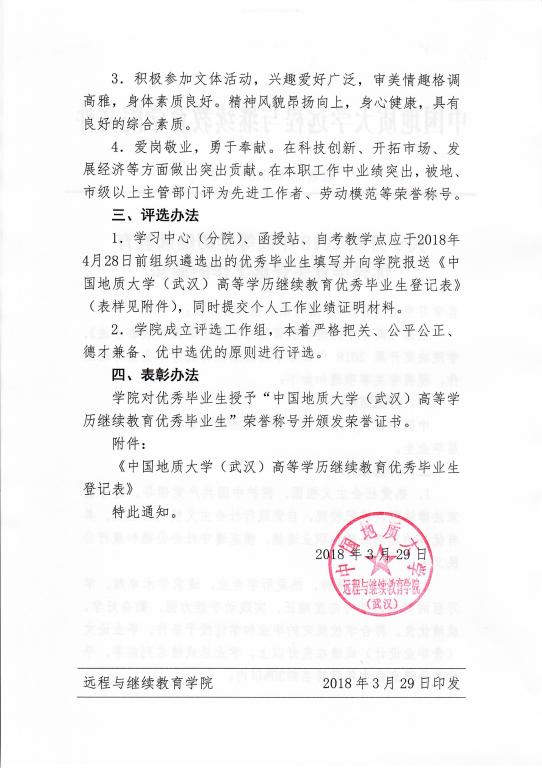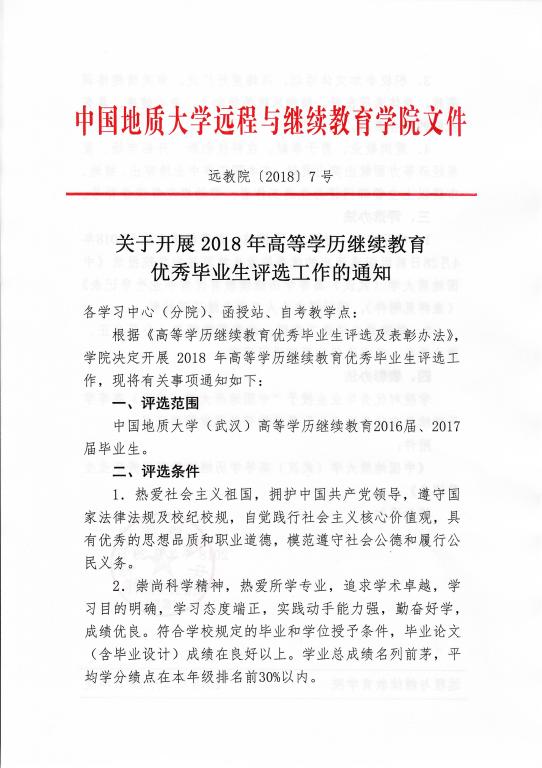 远教院[2018] 7号《关于开展2018年高等学历继续教育优秀毕业生评选工作的通知》
