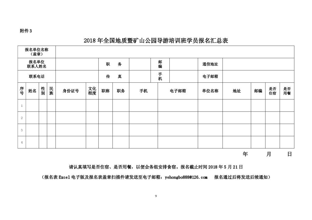2018年全国地质暨矿山公园系列培训报到通知(二号)