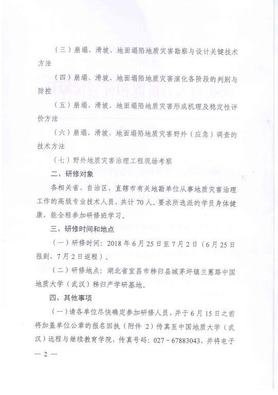 2018年全国地质暨矿山公园系列培训报到通知(二号)