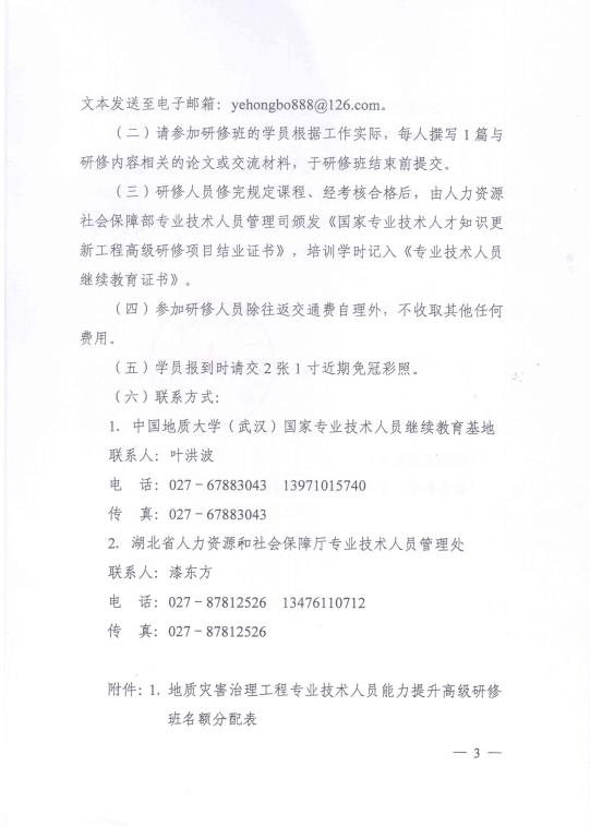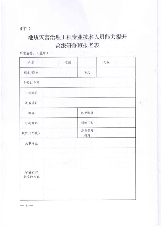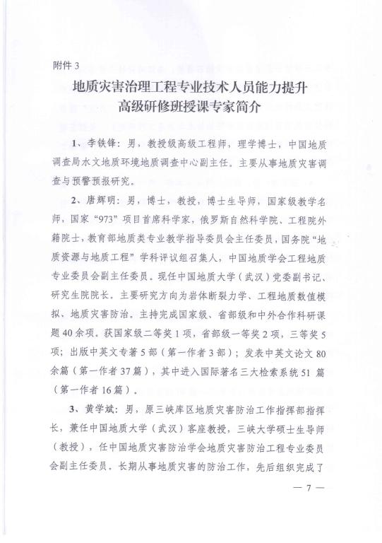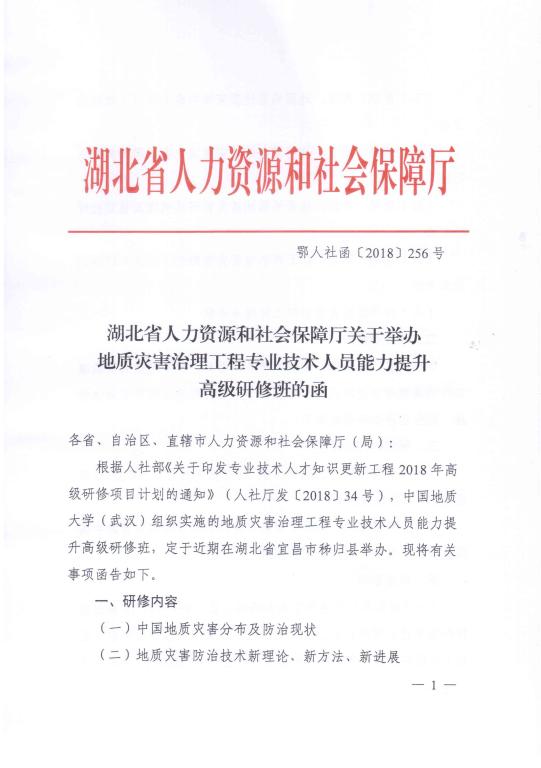 举办“地灾治理工程专技人员能力提升”高研班的函