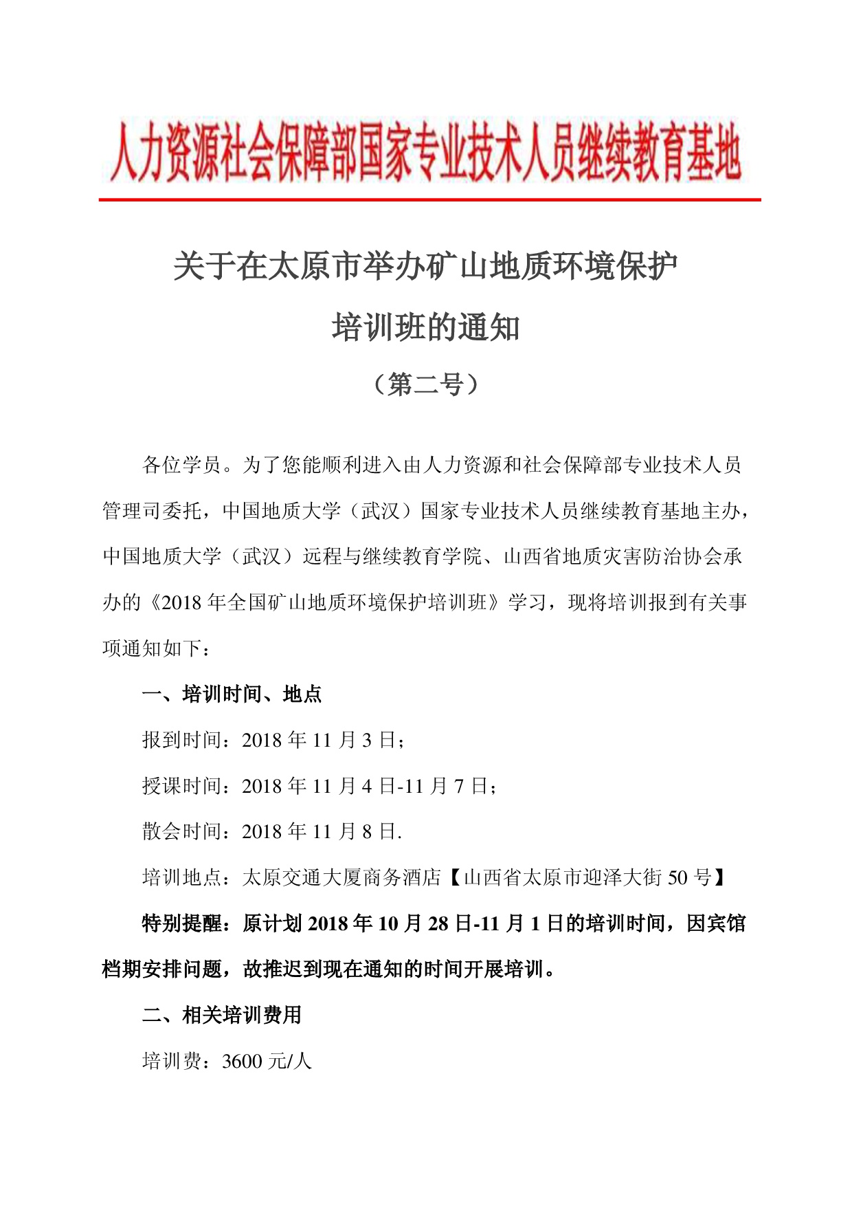 在太原市举办矿山地质环境保护培训班的第二号通知