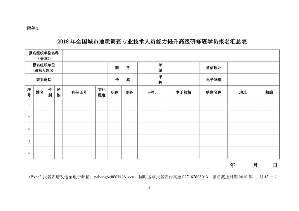 附件3:2018年全国城市地质调查专业技术人员能力提升高级研修班学员报名汇总表.doc
