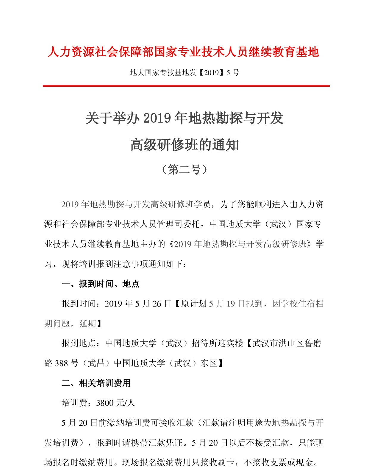 举办2019年地热勘探与开发高级研修班的通知(第二号)