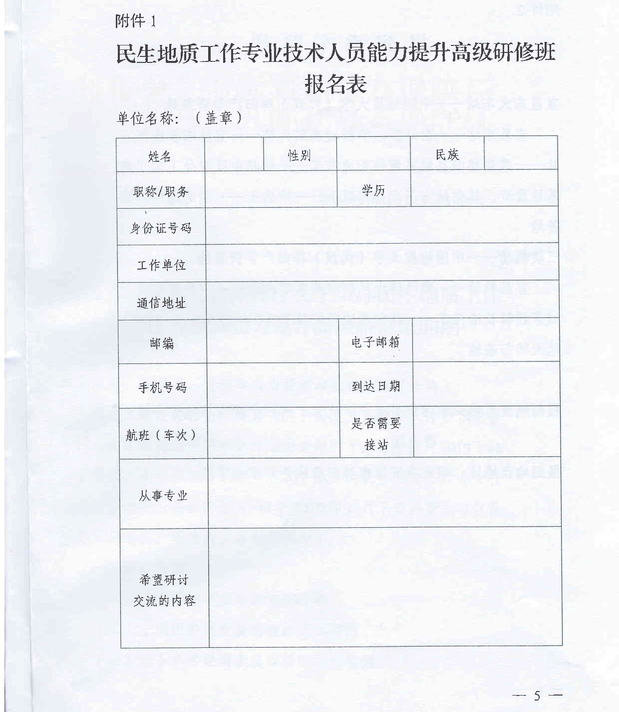 附件1:民生地质工作专业技术人员能力提升高级研修班报名表.doc
