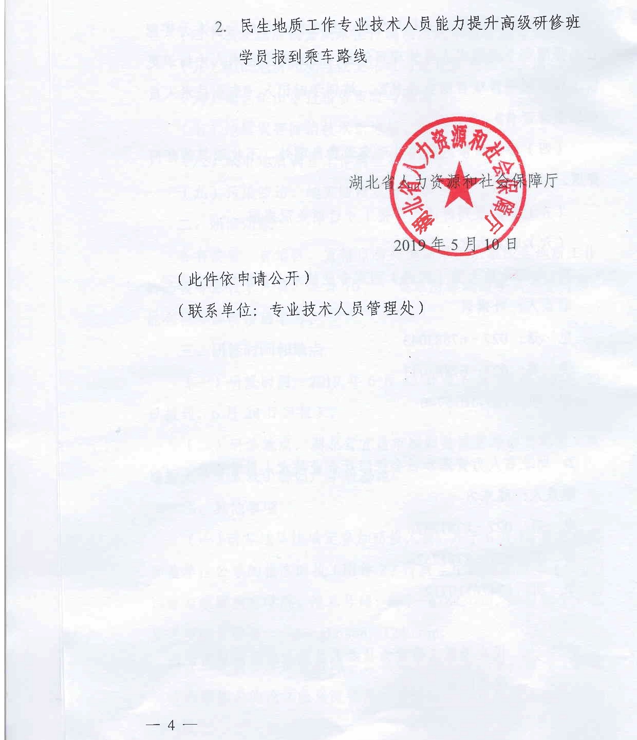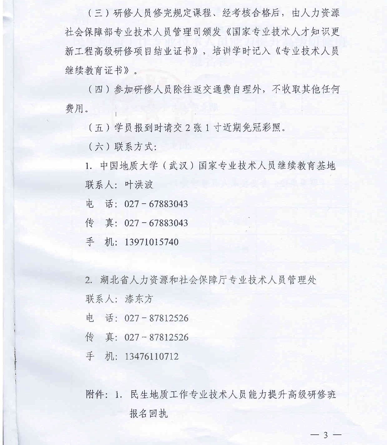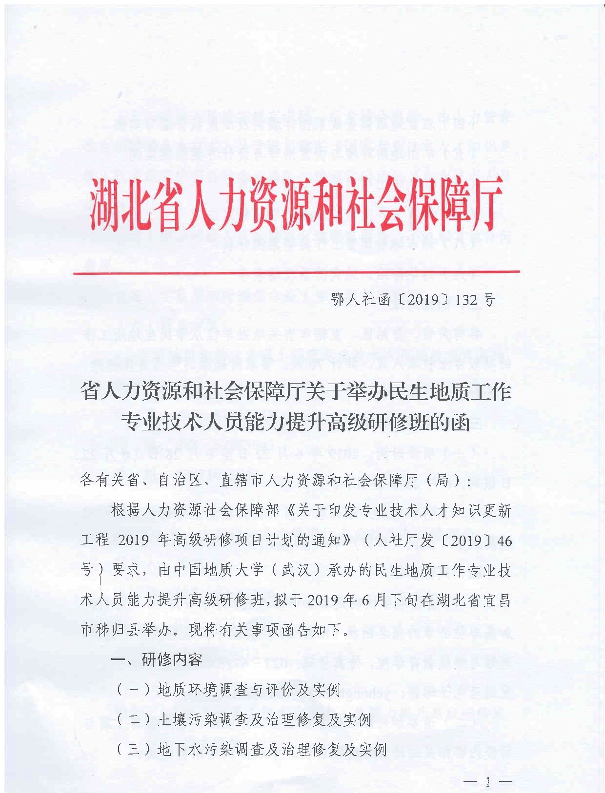 湖北省人社厅举办民生地质工作高级研修班的函