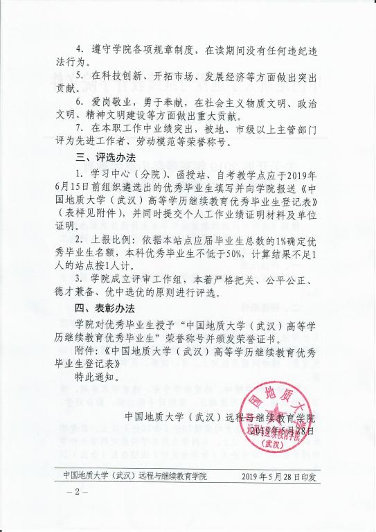 关于开展2019年高等学历继续教育优秀毕业生评选工作的通知