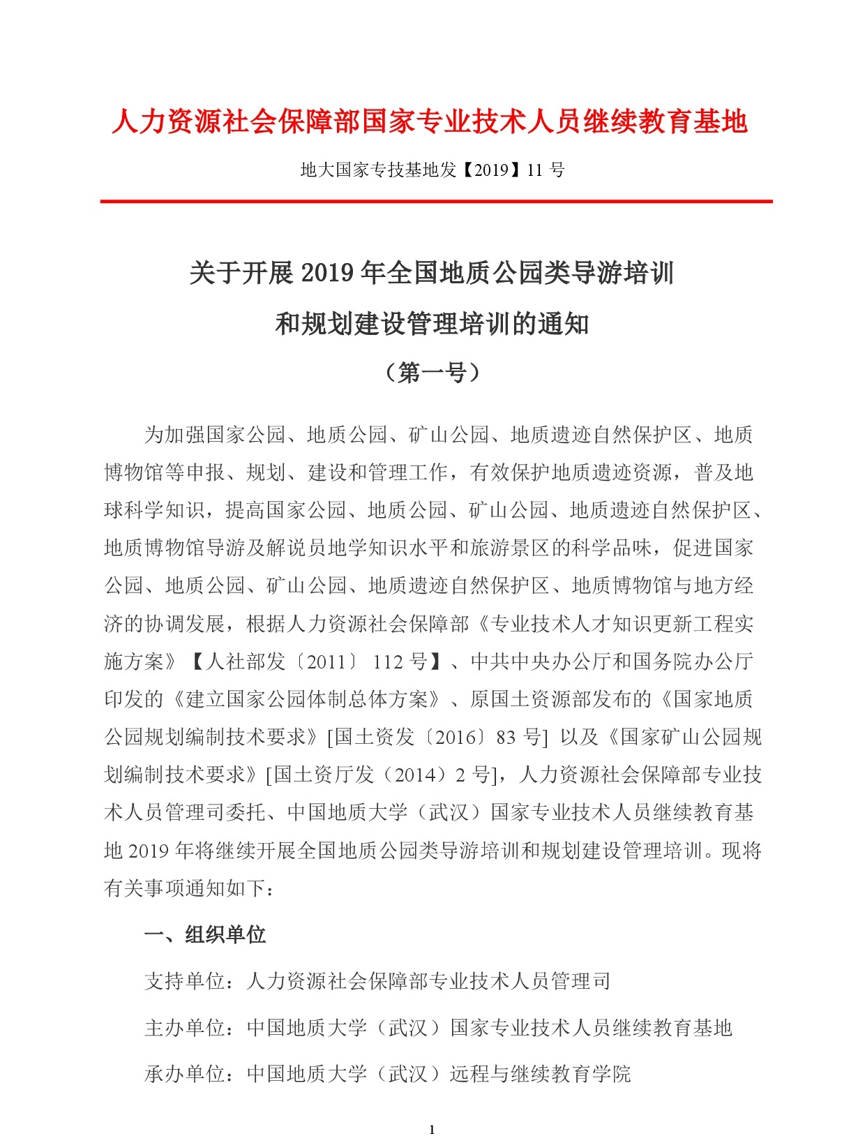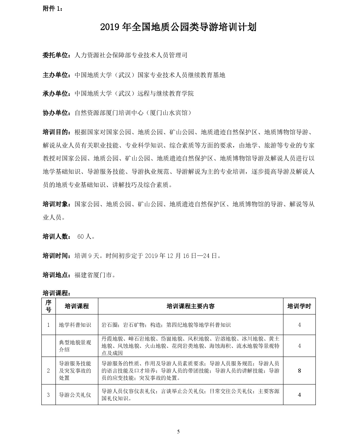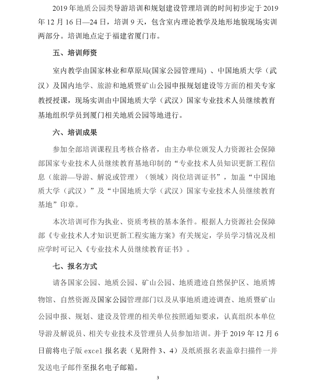 开展2019年地质公园类导游和规划建设管理培训的通知