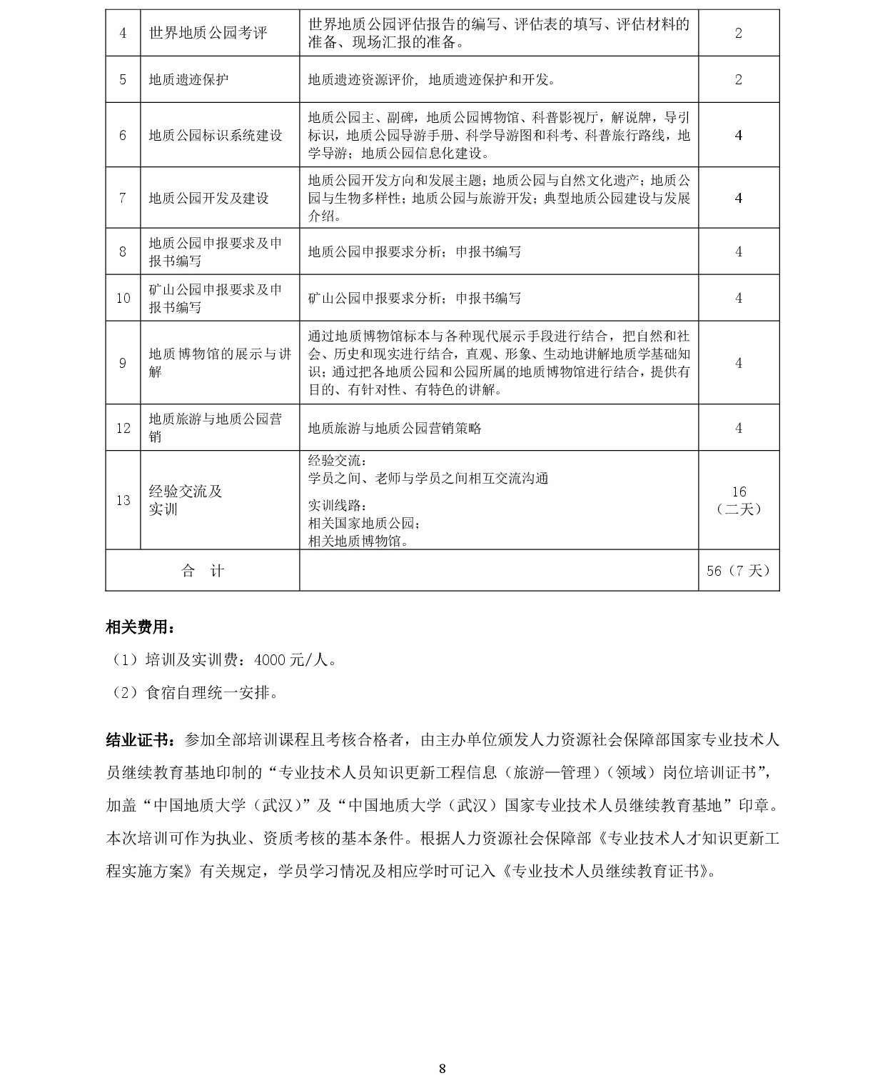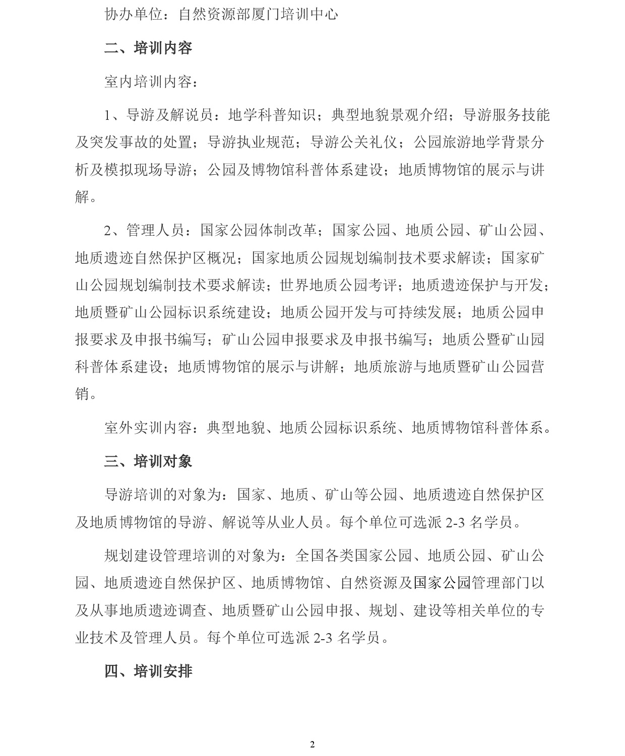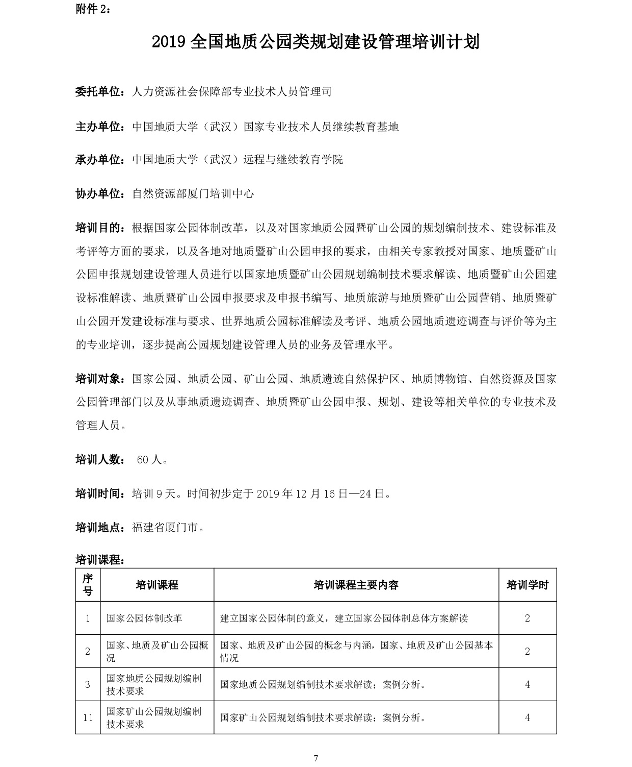 开展2019年地质公园类导游和规划建设管理培训的通知
