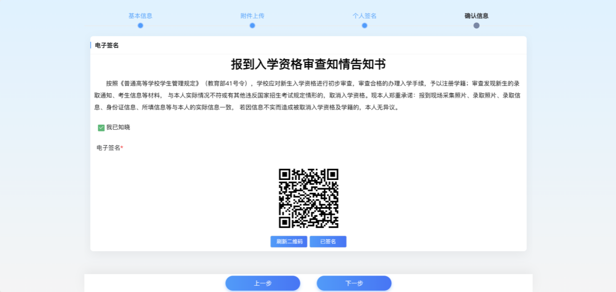 6.确认《报到入学资格审查知情告知书》后进行电子签名