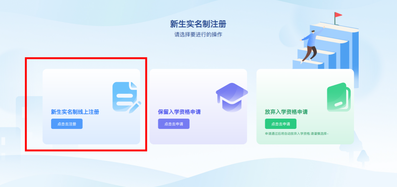 2.打开链接/扫描二维码后,输入证件号、手机号和验证码进行登录。选择左边第一条【新生实名制线上注册】