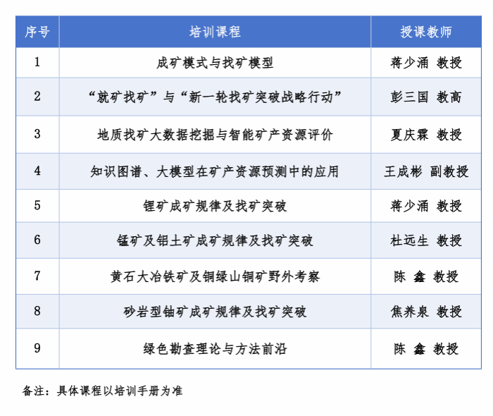党的十八大以来,党中央始终将国家能源和矿产资源安全保障置于战略高度,多次作出重要指示批示,明确要求提升能源资源安全保障能力,坚定不移持续深入推进新一轮找矿突破战略行动,大力强化资源节约集约循环高效利用。习近平总书记着重指出:“要加大勘查力度,加强科技攻关,在新一轮找矿突破战略行动中展现更大作为、发挥更大作用。”2025年全国自然资源工作会议进一步明确,要立足国家长远发展需求,优化找矿突破战略布局,强化科技创新驱动,推动找矿工作向更高质量、更有效率、更可持续的方向迈进。根据找矿突破工作专业技术人才的知识更新需求,结合最新政策导向与行业发展趋势,谈球吧官方网站(武汉)拟举办新一轮找矿突破工作专业技术人才知识更新工程高级研修班(第三期),现将有关事项通知如下。