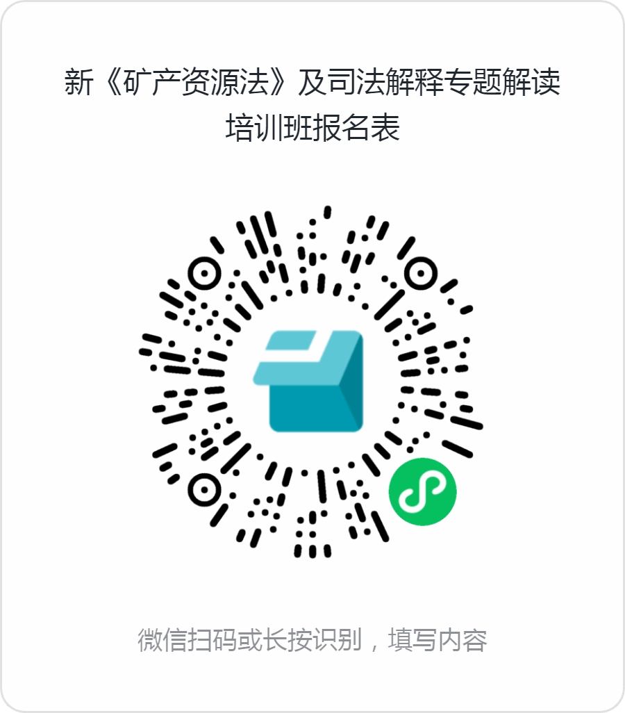 微信扫描下方二维码在线报名,请在2026年4月14日前完成,缴费时备注“姓名+矿产资源法培训班”。计划招生100人(额满为止)。