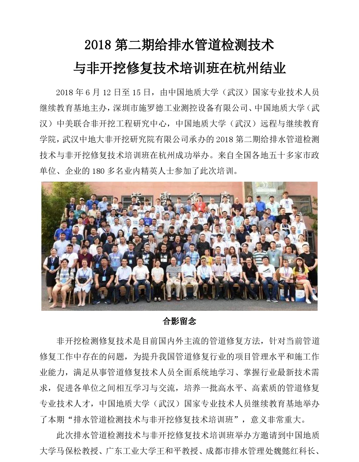 2018年第二期给排水管道与非开挖培训班在杭州结业