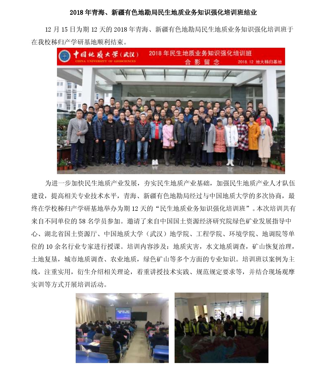2018年青海、新疆有色地勘局民生地质业务知识强化培训班结业
