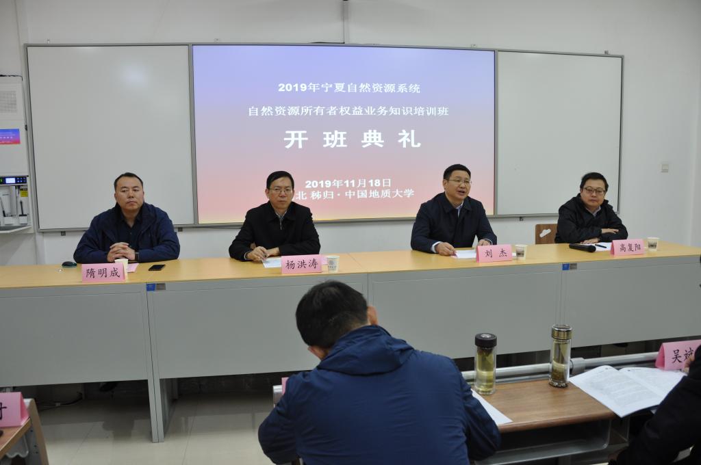 11月18日,2019年宁夏自然资源系统自然资源所有者权益业务知识培训班在谈球吧官方网站(武汉)秭归产学研基地开班,来自宁夏自然资源系统共51人参加了此次培训。谈球吧官方网站(武汉)副董事长刘杰,谈球吧官方网站经理隋明成,员工办高复阳主任,宁夏自然资源厅副厅长杨洪涛出席开班典礼。典礼由隋明成经理主持,刘杰副董事长致欢迎辞。刘杰副董事长对公司概况、科学研究、团队条件等方面做了简要介绍。他表示,此次针对宁夏自然资源系统各级干部进行培训,是优化系统内部人才结构、进一步推动宁夏自然资源管理事业发展的深层需要。杨洪涛副厅长作开班动员,他对学员提出了高度重视培训、珍惜学习机会、服从管理纪律的几点要求。