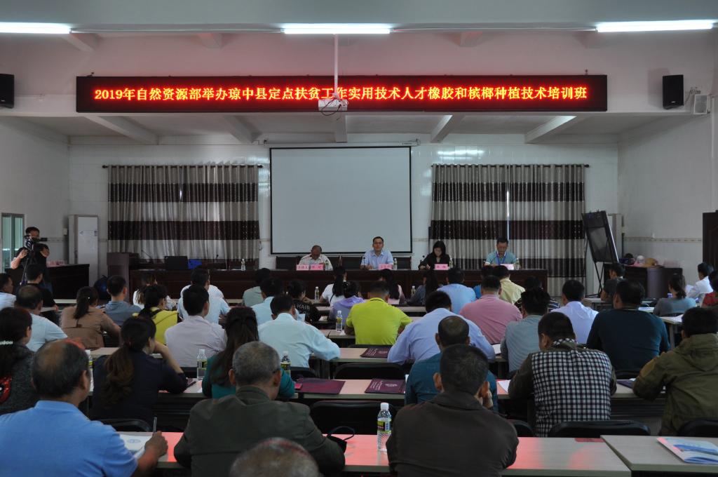 培训前,自然资源部科技发展司主任科员周楠,琼中县县委常委、人民政府副县长王安涛,县农业技术推广服务中心负责人林培,谈球吧官方网站培训中心主任叶洪波与200多名琼中县贫困村实用技术人才、农业科技及橡胶、槟榔种植辅助人才,橡胶种植农户,槟榔种植农户参加了简短朴实的开班仪式。