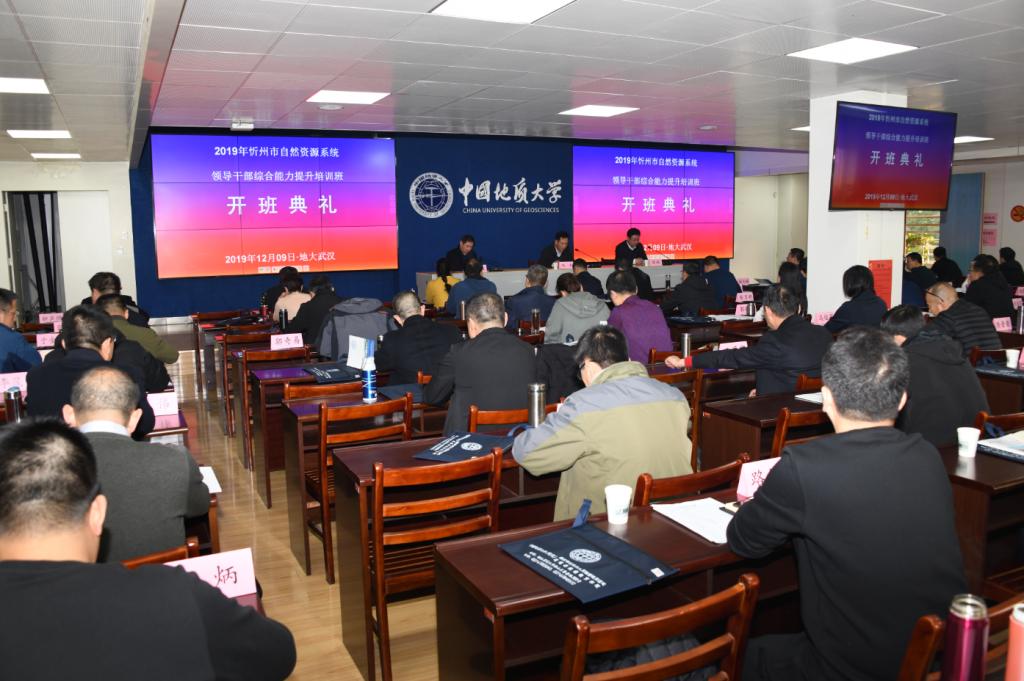 12月9日,2019年忻州市规划和自然资源系统领导干部综合能力提升培训班在公司开班。谈球吧官方网站(武汉)远程与继续教育公司党支部书记吕国斌,山西省忻州市规划和自然资源局党组成员、副局长刘杰,其他党组成员、副局长王爱明、韩玉峰、帅志梅等出席本次开班典礼。