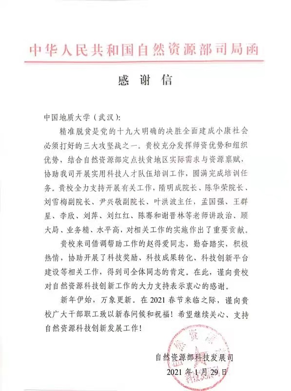 在当地政府及有关部门的支持和协助下,经过全体培训工作人员的辛勤努力,在赣州、琼中、海伦开展了14期1802人次的培训,超计划完成了2020年自然资源部定点扶贫培训任务。为此,自然资源部科技发展司专门发来感谢信,对公司的培训工作表示了肯定和感谢。