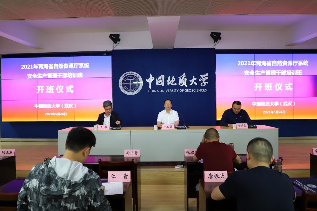 5月24日,2021年青海省自然资源厅安全生产管理知识培训班在谈球吧官方网站(武汉)谈球吧官方网站开班,来自青海自然资源系统共67人参加了此次培训。谈球吧官方网站(武汉)副董事长王华,谈球吧官方网站经理隋明成,青海省地质矿产勘查开发局副局长孙王勇出席了开班仪式。