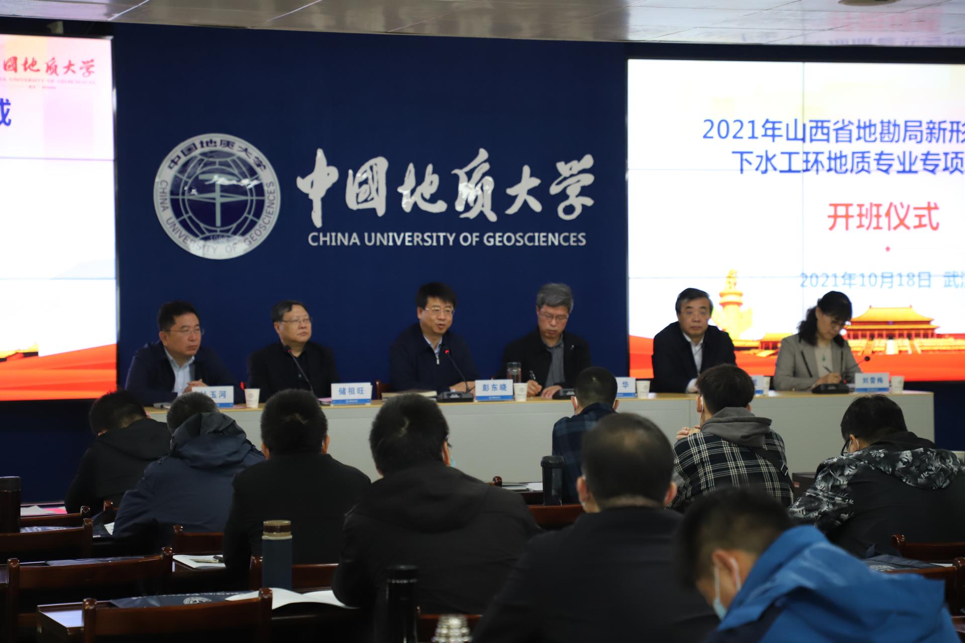 地大新闻网讯(通讯员 李欣 摄影 叶洪波)10月18日,2021年山西地勘局新形势新领域下水工环地质专业专项培训班开班,来自山西省地质勘查系统共60人来校参加培训。副董事长王华,宣传部部长储祖旺,谈球吧官方网站副经理刘雪梅,山西省地质勘查局局长彭东晓、专家委员会常务副主任阎世龙、人事教育处处长杜玉河等参加开班仪式。刘雪梅主持开班仪式。