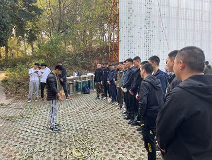 公司体育公司周云老师给全体学员讲述了野外工作可能遇到的突发情况,以及应对办法,并带领全体学员在公司户外生存训练基地进行实操训练。