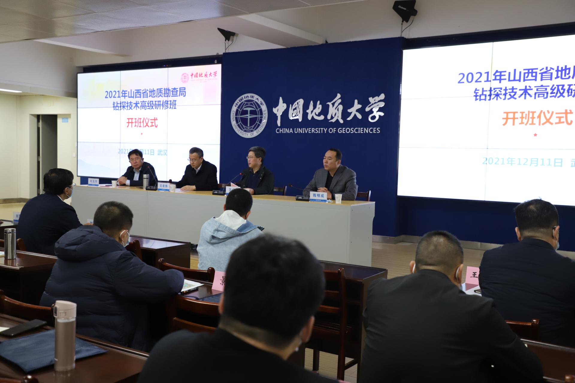 (通讯员 施芮琦  摄影 叶洪波)1211日,山西省地质勘查局钻探技术高级研修班开班仪式在谈球吧官方网站312培训教室举行。公司党委常委、副董事长王华,远程与继续教育公司党总支书记、经理隋明成,山西省地质勘查局党组副书记、副局长、一级巡视员王宏伟,局人事教育处处长、山西地质集团有限公司党委专职副书记、副董事长杜玉河,以及山西地勘局钻探技术高研班60名学员参加开班仪式。隋明成主持开班仪式。