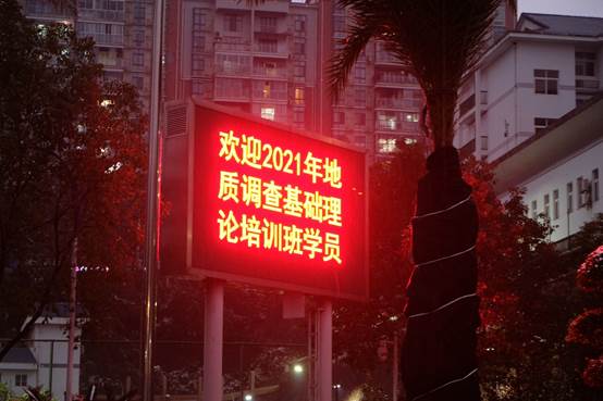 进入基地大院,“欢迎2021地质调查基础理论培训班”的标语赫然显示在停车场的LED显示屏上。随后,工作人员在秭归产学研基地阶梯教室详细地讲解了住宿办理流程、宿舍热水使用方法、食堂用餐规范、教室、洗衣房、运动场等配套设施的使用规范。