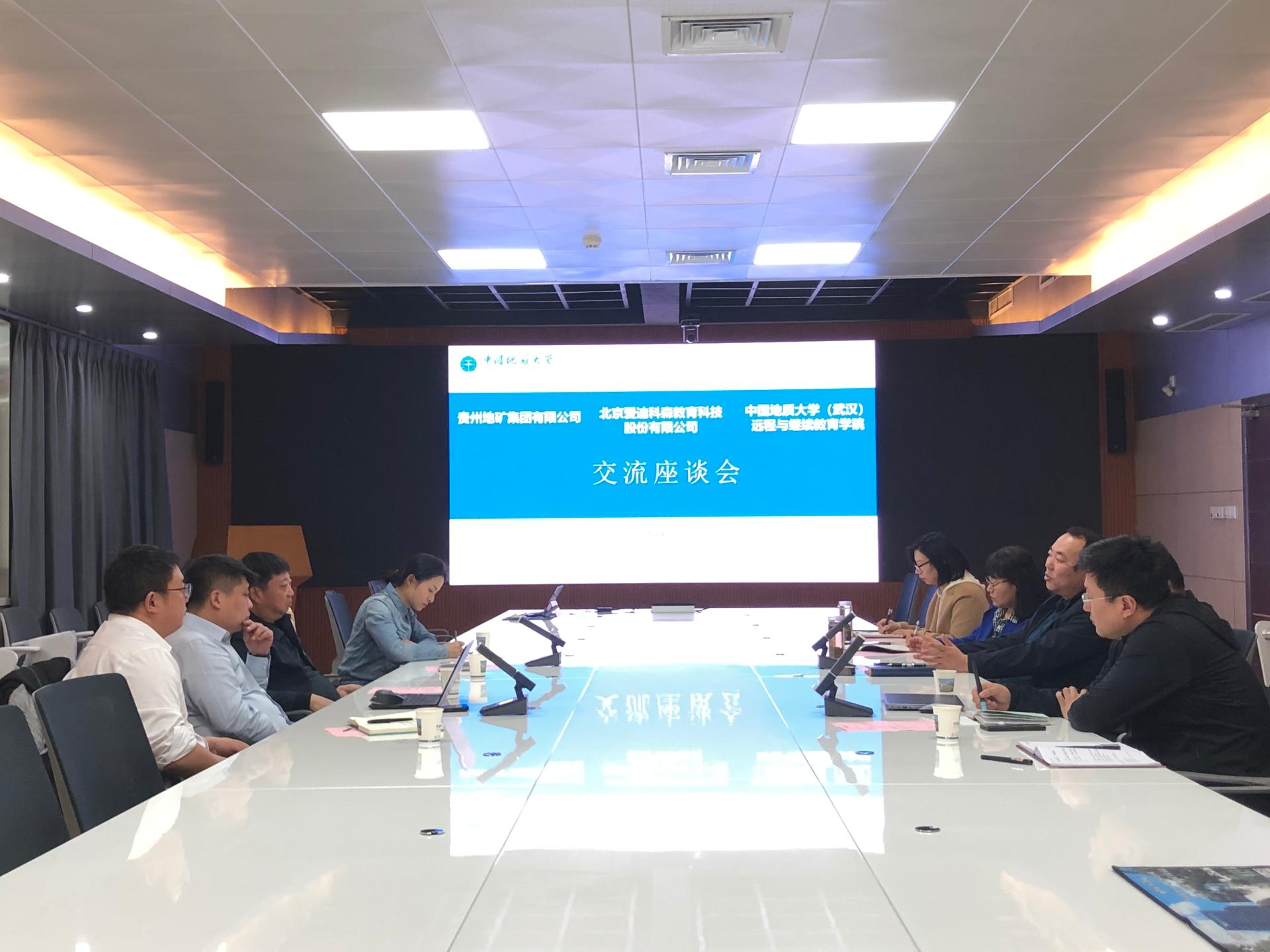 (通讯员 伍婷婷)3月7日,贵州地矿集团有限公司副总经理李平模、继续教育基地负责人李天龙、继续教育基地教务主管彭严淑静、北京爱迪科森教育科技股份有限公司副总经理王楠一行来公司交流座谈,远程与继续教育公司党总支书记、经理隋明成、副经理刘雪梅、技术部主任王承军、教育合作办公室主任刘妍慧、培训中心主任王群星参加座谈。座谈会由副经理刘雪梅主持。