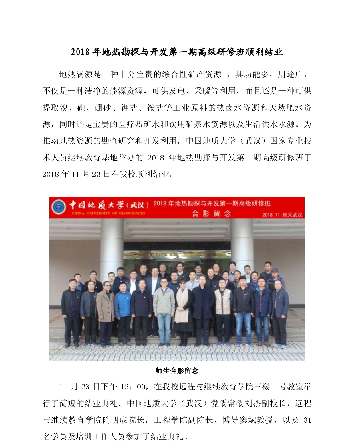 2018年地热勘探与开发第一期高研班顺利结业