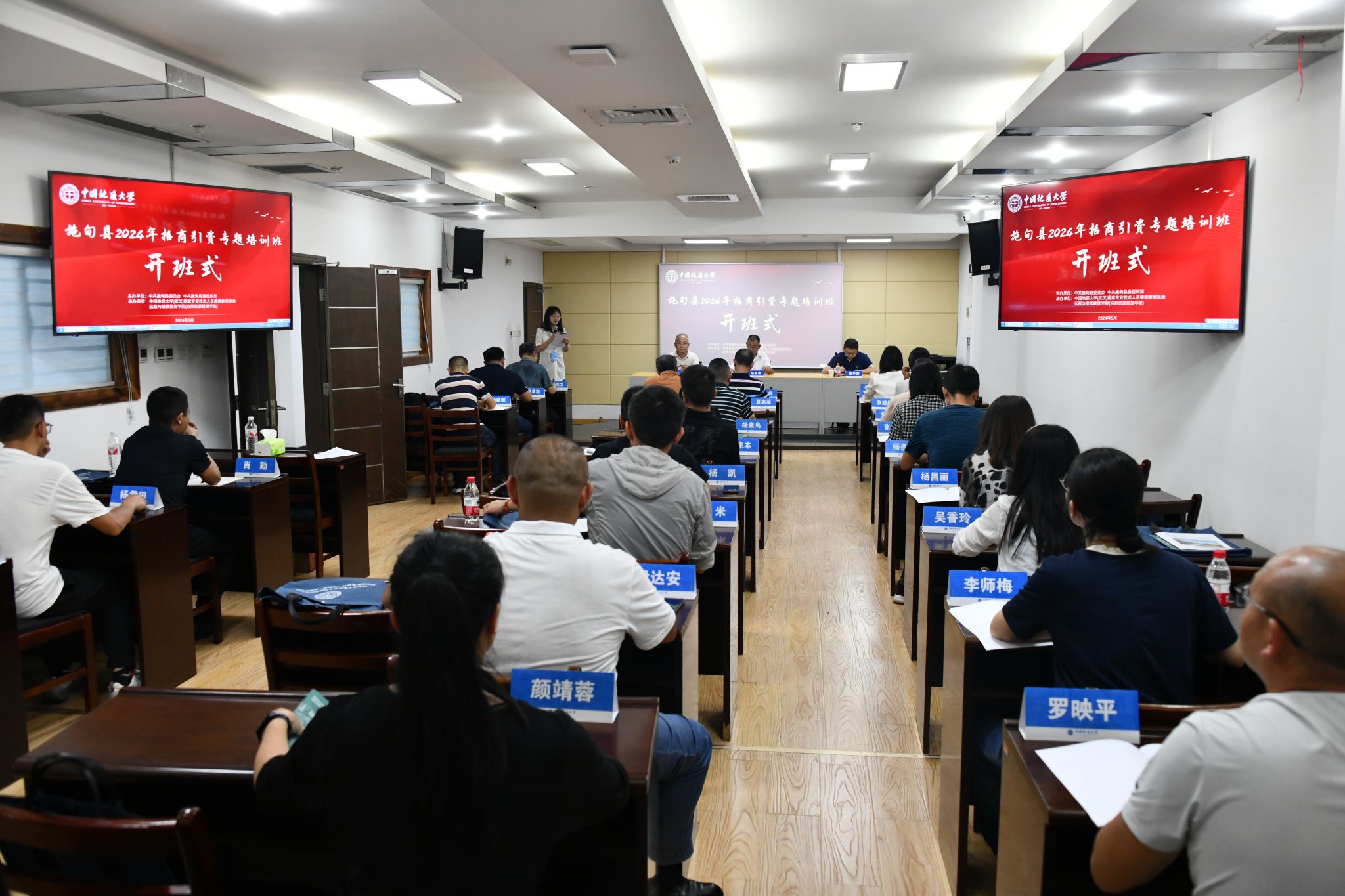 5月27日,施甸县2024年招商引资专题培训班在公司顺利开班。施甸县人大常委会副主任杨应忠、谈球吧官方网站(武汉)员工与社会合作处处长陈华荣、谈球吧官方网站(自然资源管理公司)副经理王兴以及来自施甸县30名学员参加开班式。