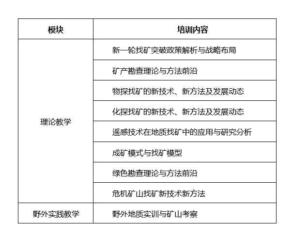 根据目前地勘单位专业技术人员在能源资源勘查及科技攻关能力提升的需求,谈球吧官方网站(武汉)拟于2024年启动新一轮找矿突破地质矿产勘查高级研修班。结合公司多年来地勘专业人才的培养经验,采用课堂教学、现场实训、典型案例分析三位一体的讲授模式,引入矿产勘查的新理论、新方法,并结合经典的找矿实例分析,全面提升地质找矿队伍的专业理论水平和实际业务能力。现将有关事项通知如下: