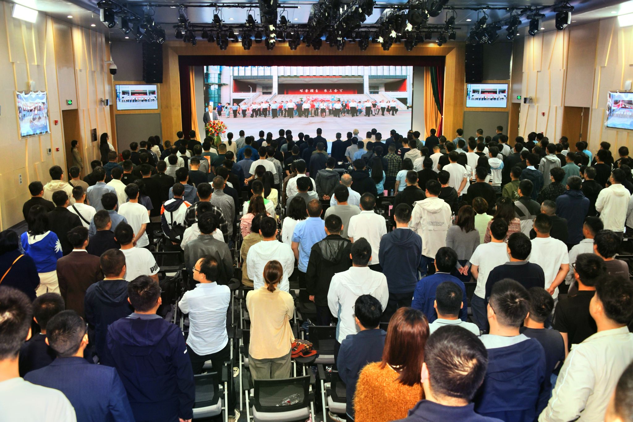 典礼开始,全体师生起立,奏唱《中华人民共和国国歌》。