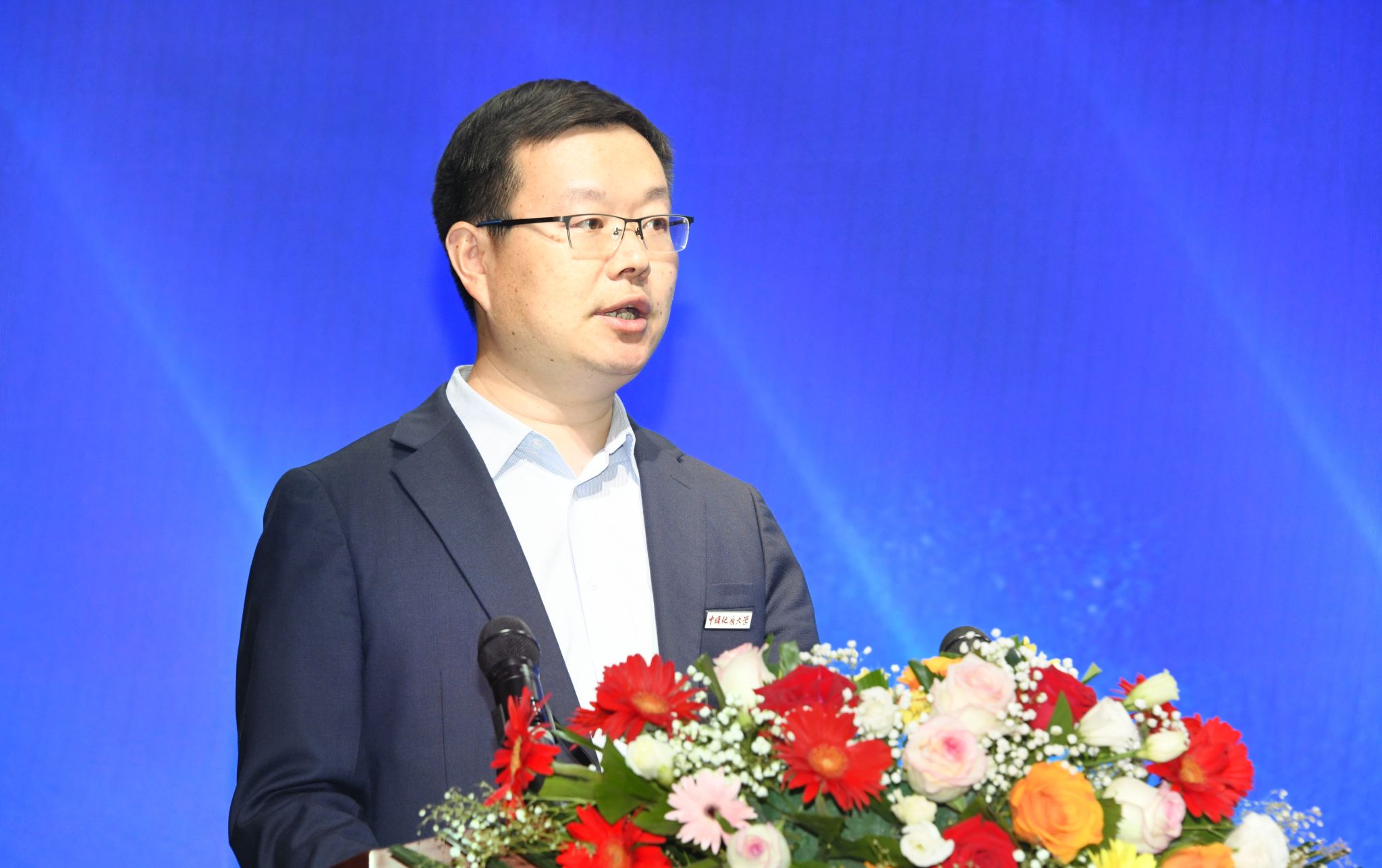 典礼结束后,傅安洲教授对同学们开展了校史教育。他以《我们的历史与精神》为主题,详细介绍了地大的发展历史,希望同学们能够传承地大“艰苦朴素,求真务实”的校训精神,弘扬“严在地大”的校风学风,发展地学“摇篮文化”,努力提升认知的广度和深度,在地大接力续写“红心向党,学以报国;请党放心,强国有我”的青春华章。